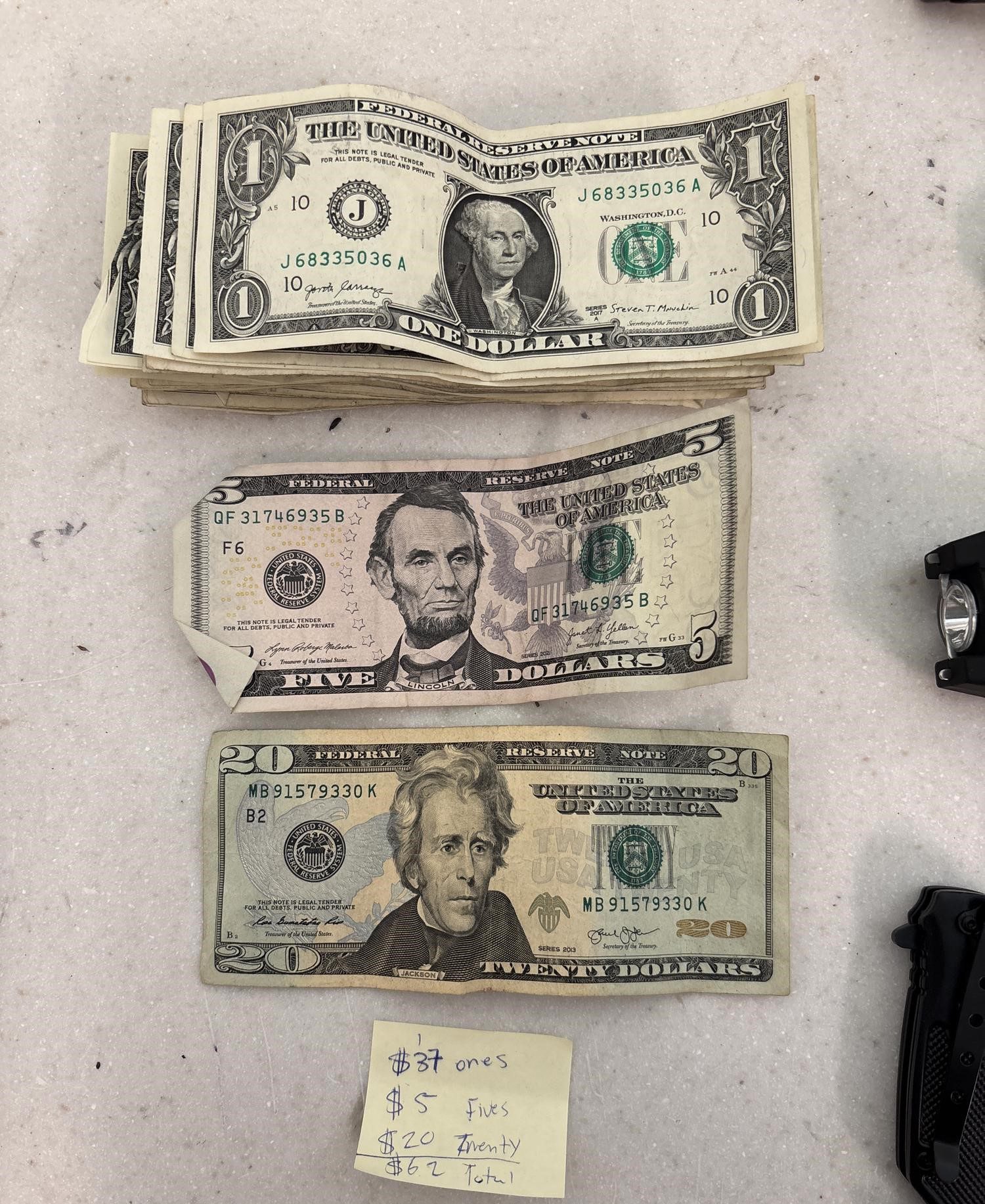 - $62 cash, bank cards