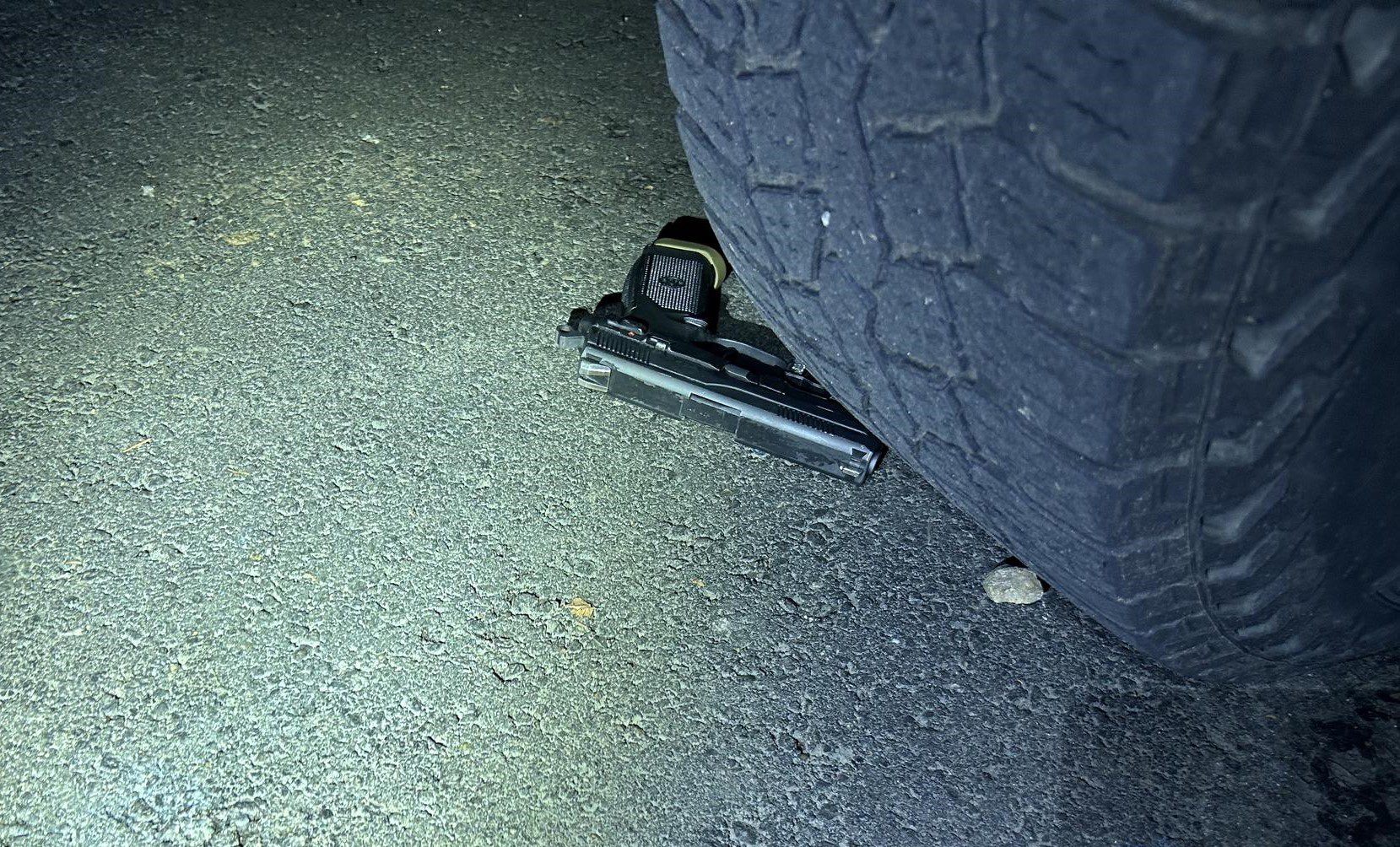 Following the altercation, officers saw another man nearby hiding a gun under a truck tire. The suspect ran and officers quickly detained him.