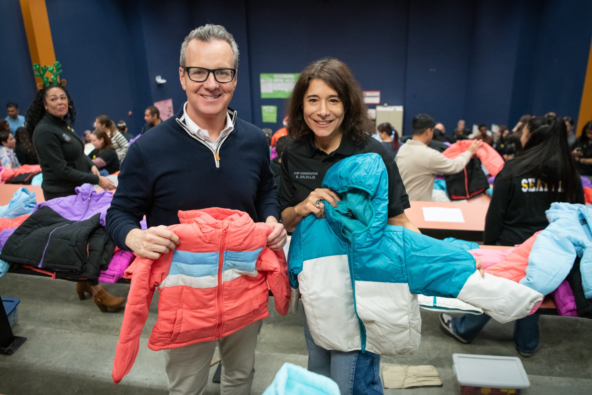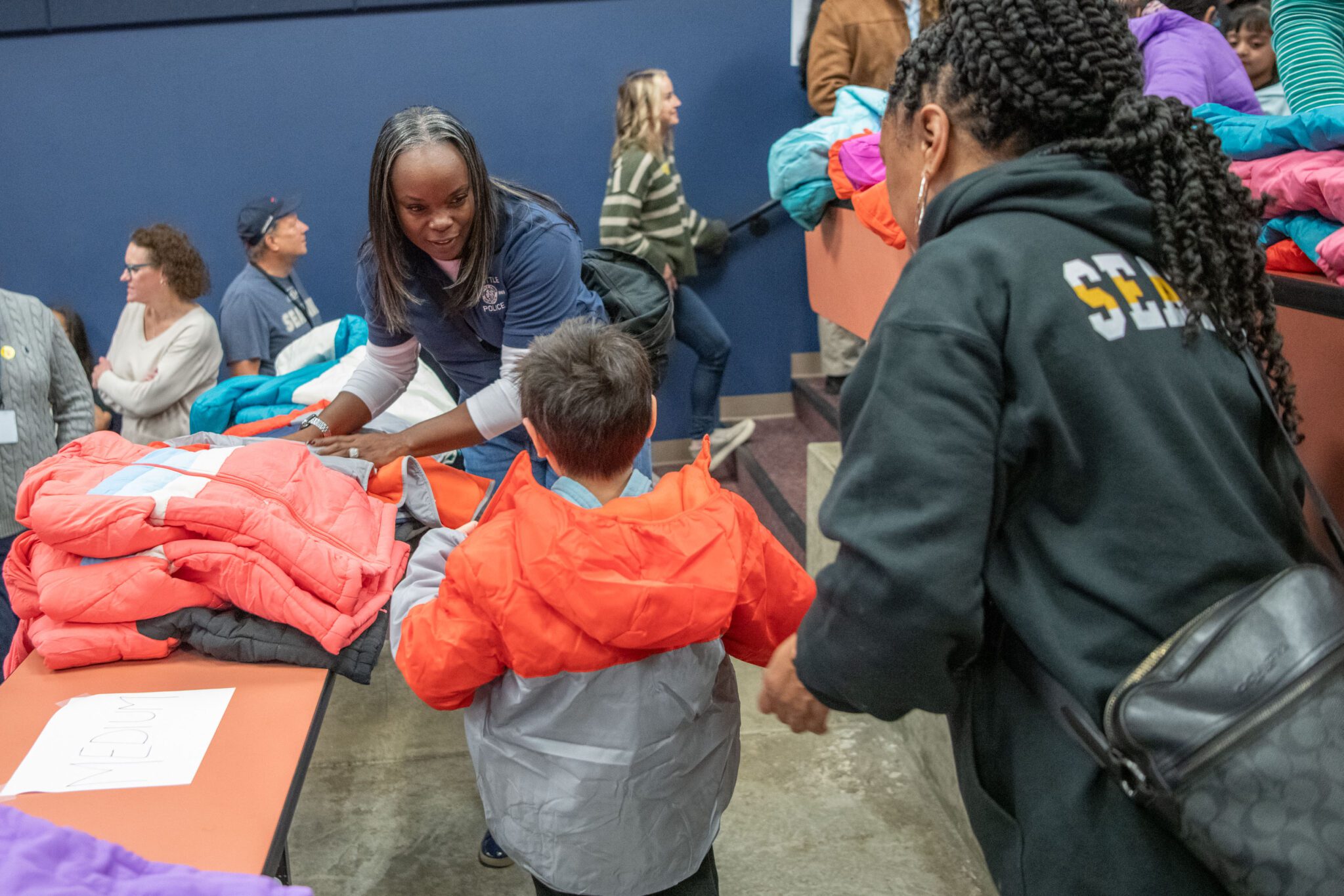 With approximately 70 volunteers, including 40 from SPD, we helped about 340 students get fitted for warm, comfy coats. Each child chose their favorite color, and the smiles said it all.