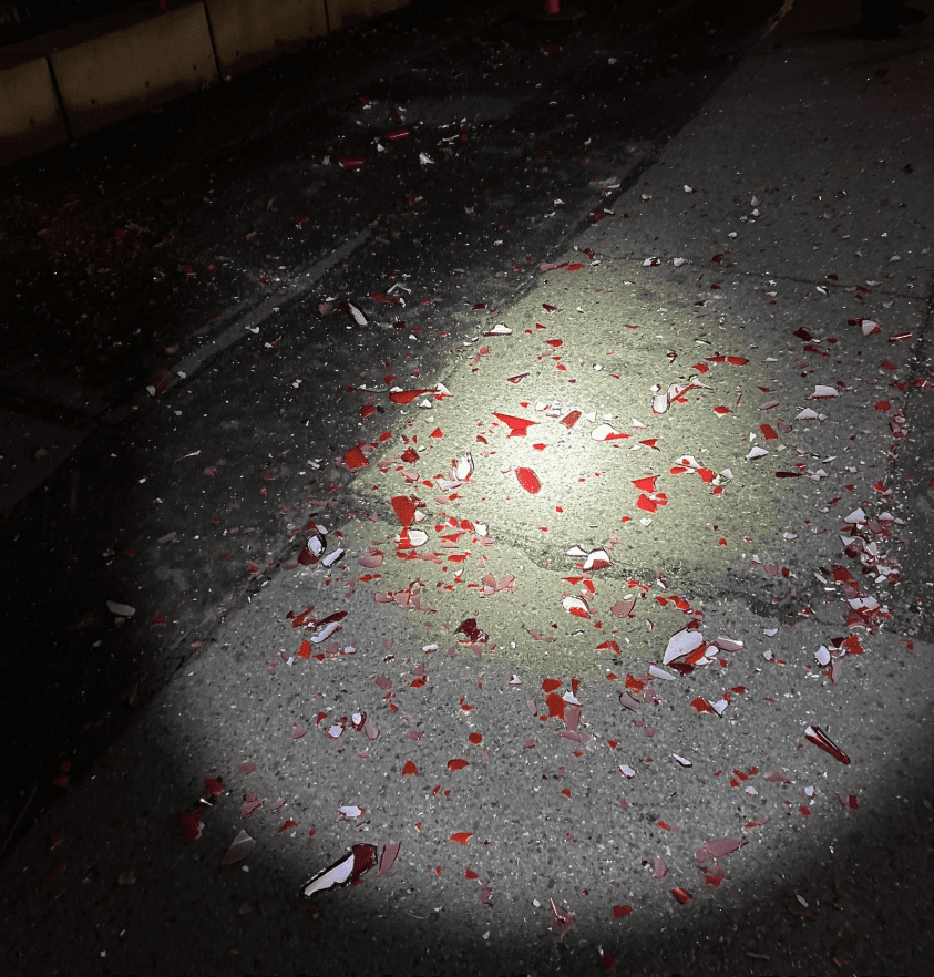 Officers arrived and contacted museum security. Officers found large pieces of colorful broken glass on the walking path and scattered around the area. Security immediately identified the suspect to police.